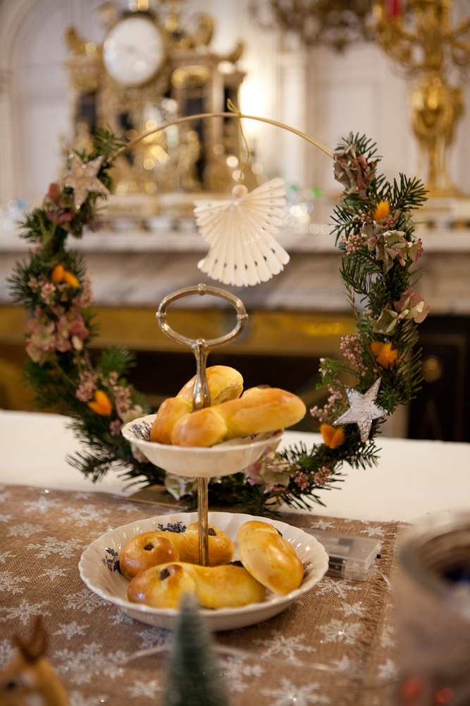 En entrée, un millefeuille de légumes avec du saumon gravlax maison suivi par un filet de bœuf en croûte, jus corsé, ou du bar rôti au fenouil ou un plat végétarien (potimarron farci au risotto). Pour continuer, fromage farci aux fruits secs et trilogie de desserts.