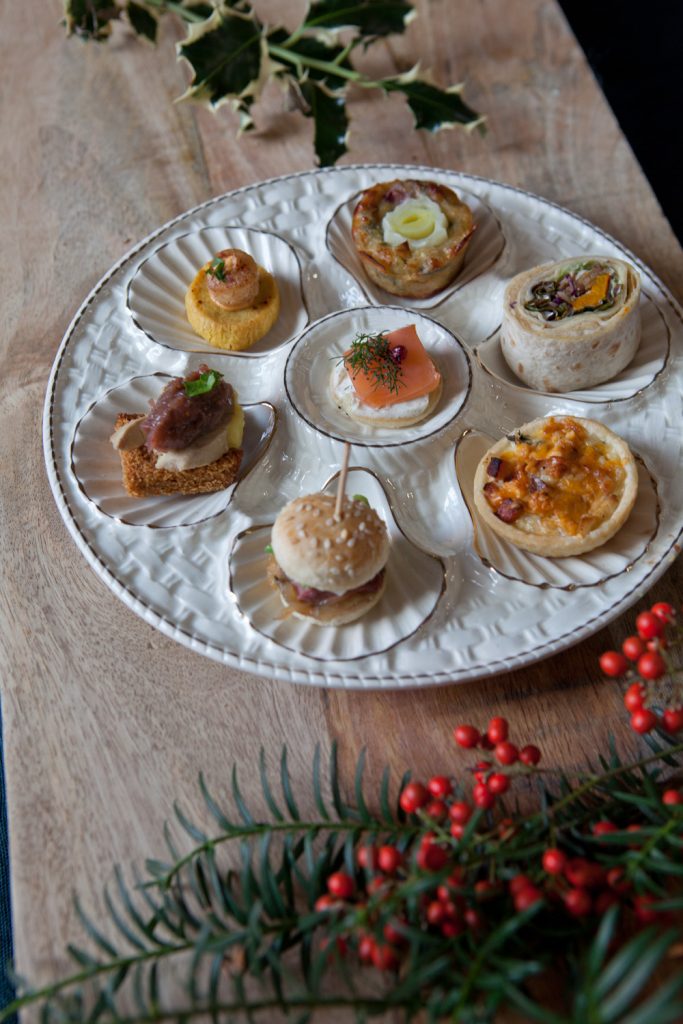 Notre cocktail 15 pièces comprend nos pièces phares ainsi que des mets nobles : blinis au saumon gravlax maison, pain d’épices au foie gras du Gers, verrine crème de potimarron-brisures de marron … et pour les gourmands, une sélection de desserts : pavlova aux fruits exotiques et une mini-bûche de Noël, etc.